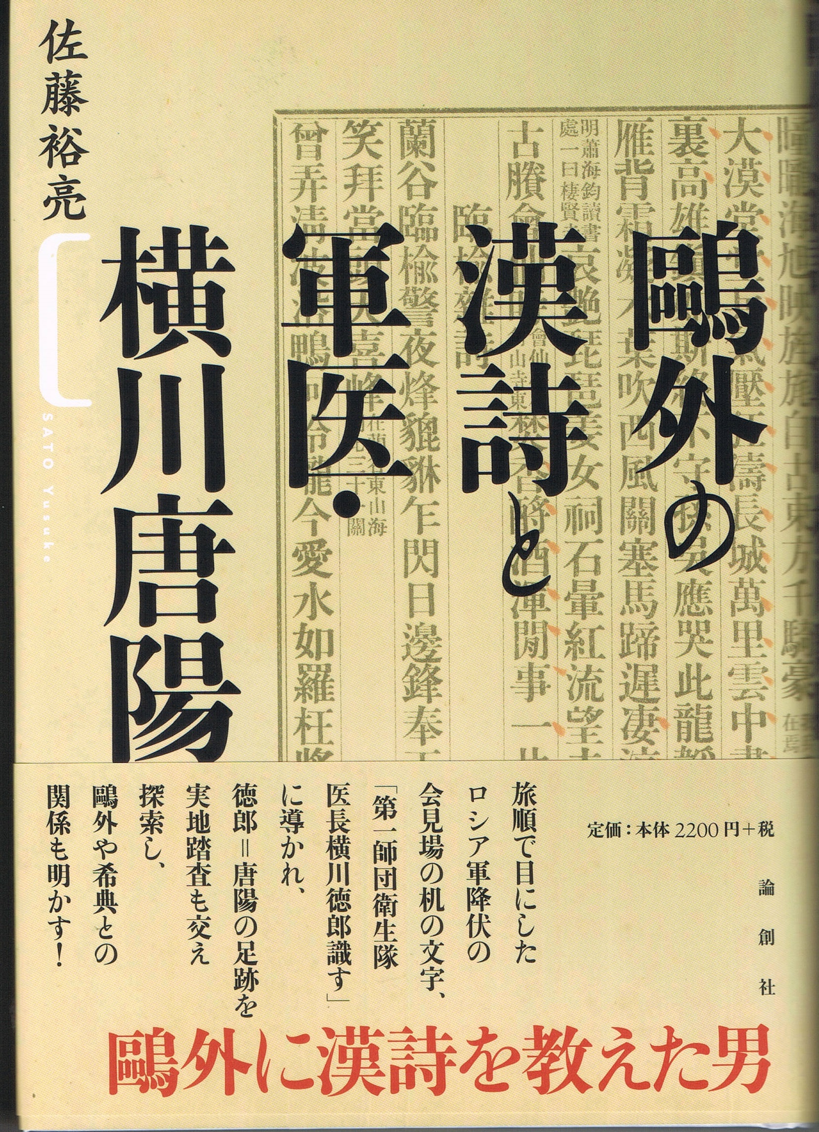 佐藤裕亮『鷗外の漢詩と軍医・横川唐陽』(2016年6月30日発行、論創社)、筆者佐藤先生よりお送りいただきました。有難うございます。